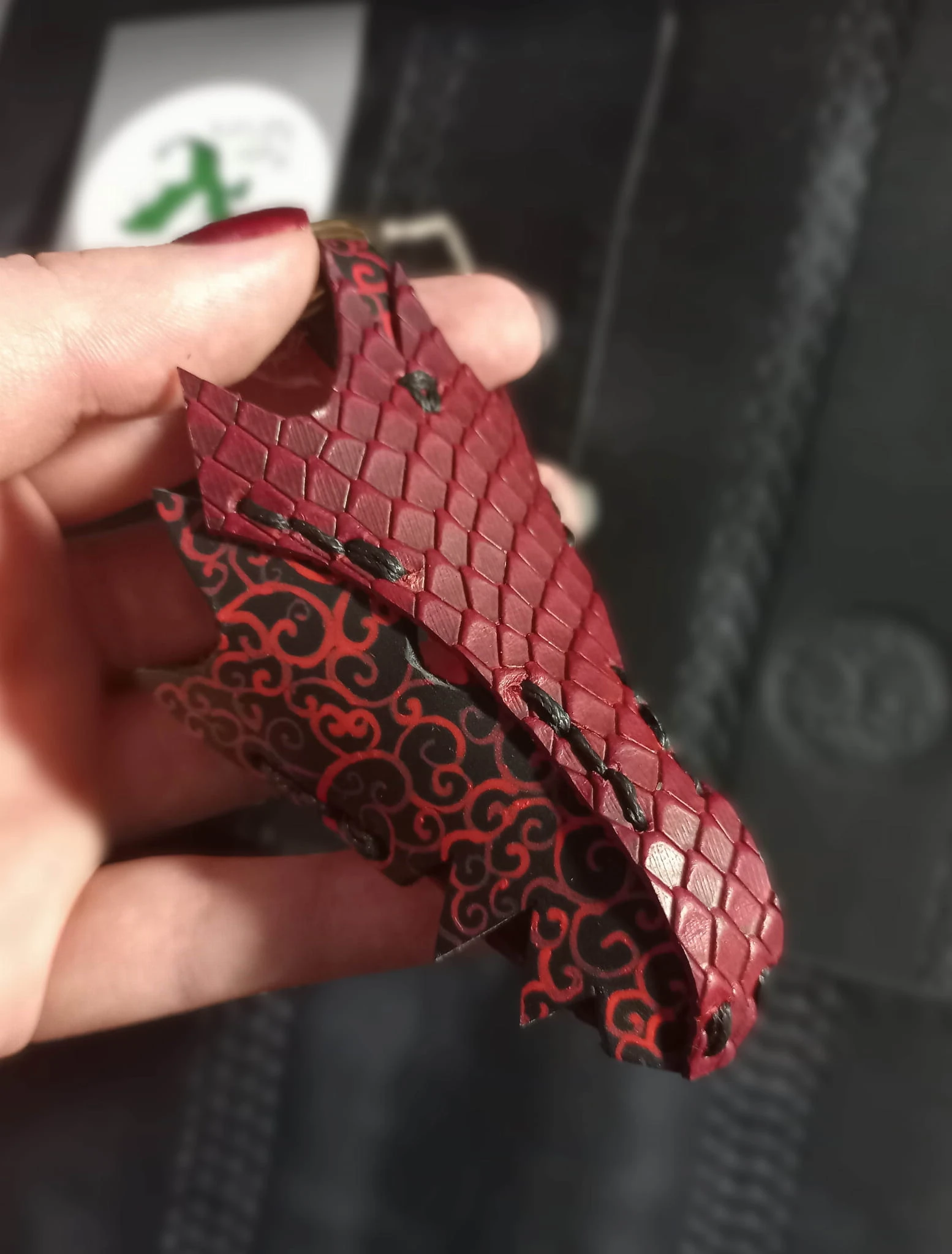 Ze względu na ręczne malowanie skóry i różnice między partiami, odcienie w rzeczywistości mogą się trochę różnić od tych na zdjęciu. To samo dotyczy skóry łuskowanej - w zależności od używanego kawałka, łuski różnią się między sobą.