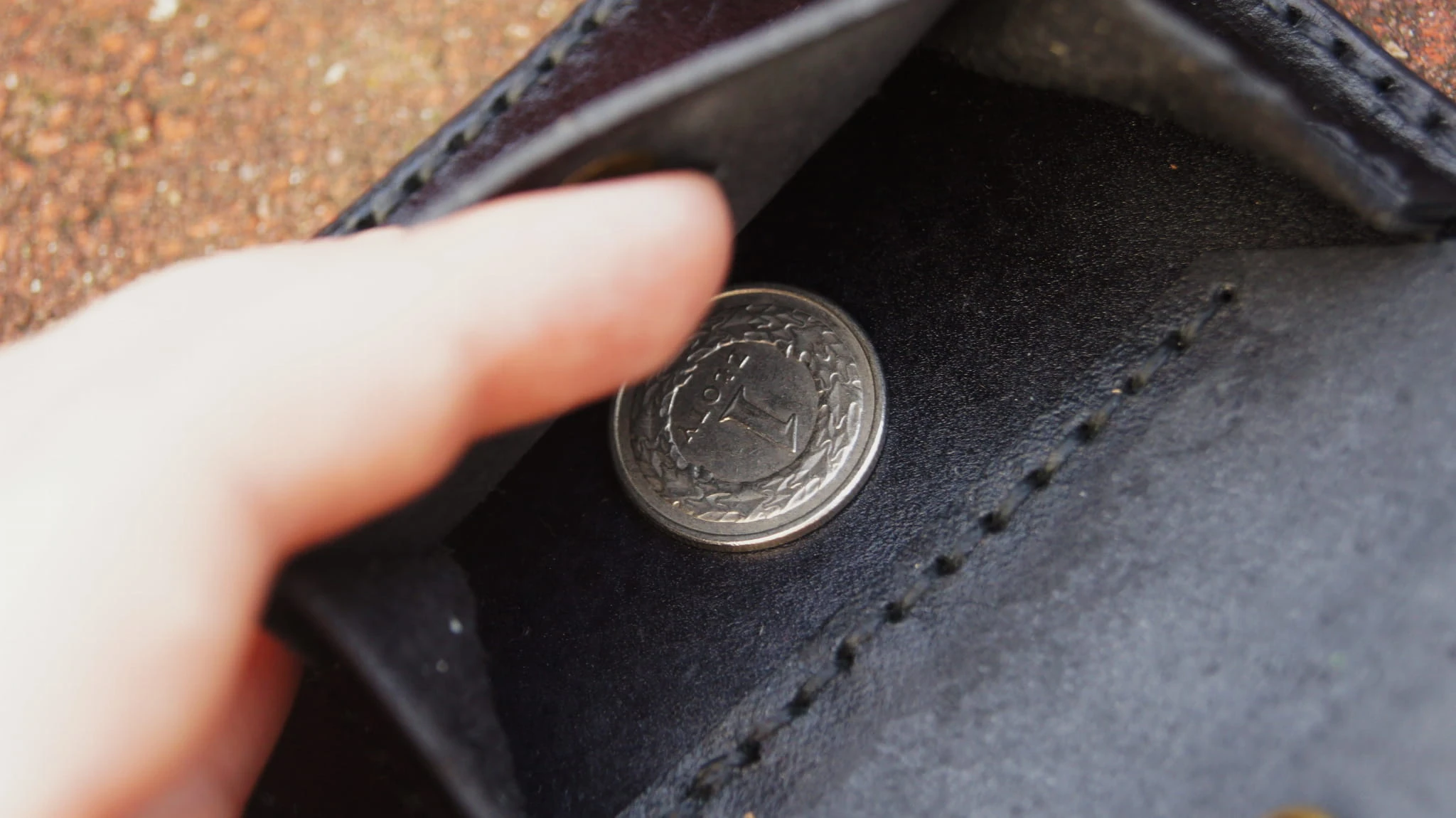 przegródkę na banknoty, zapinaną na guzik kieszonkę na monety oraz