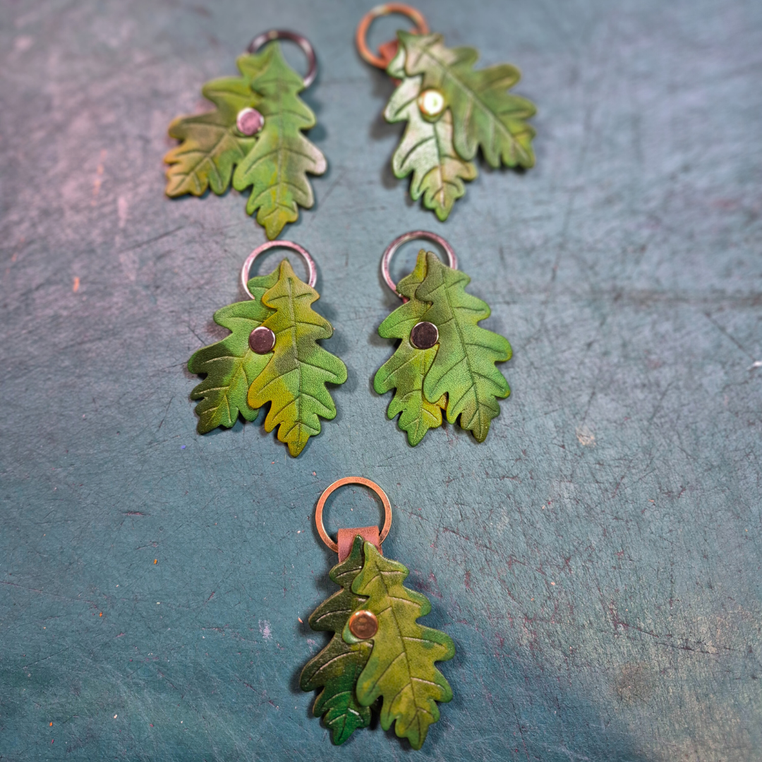 OD RĘKI brelok podwójne liście dębu skóra naturalna