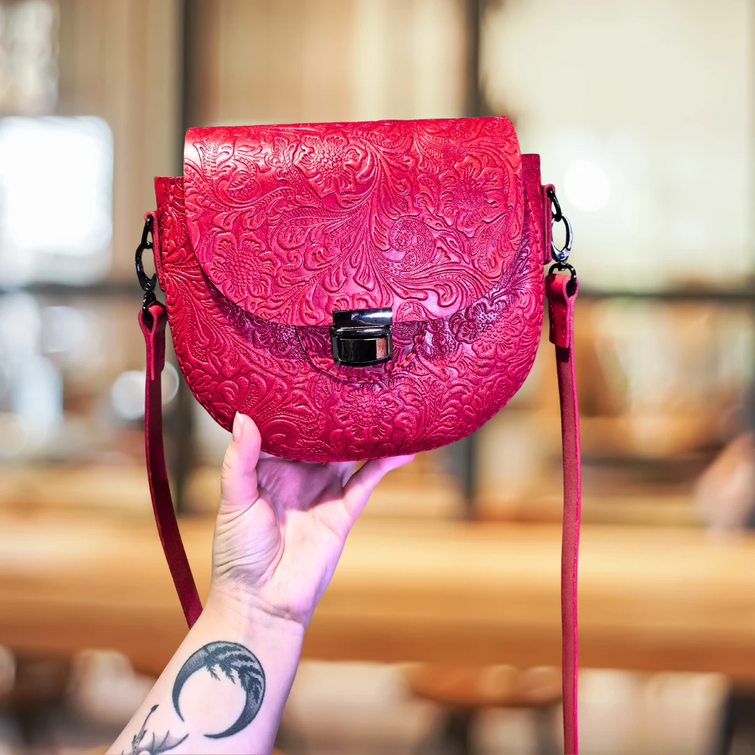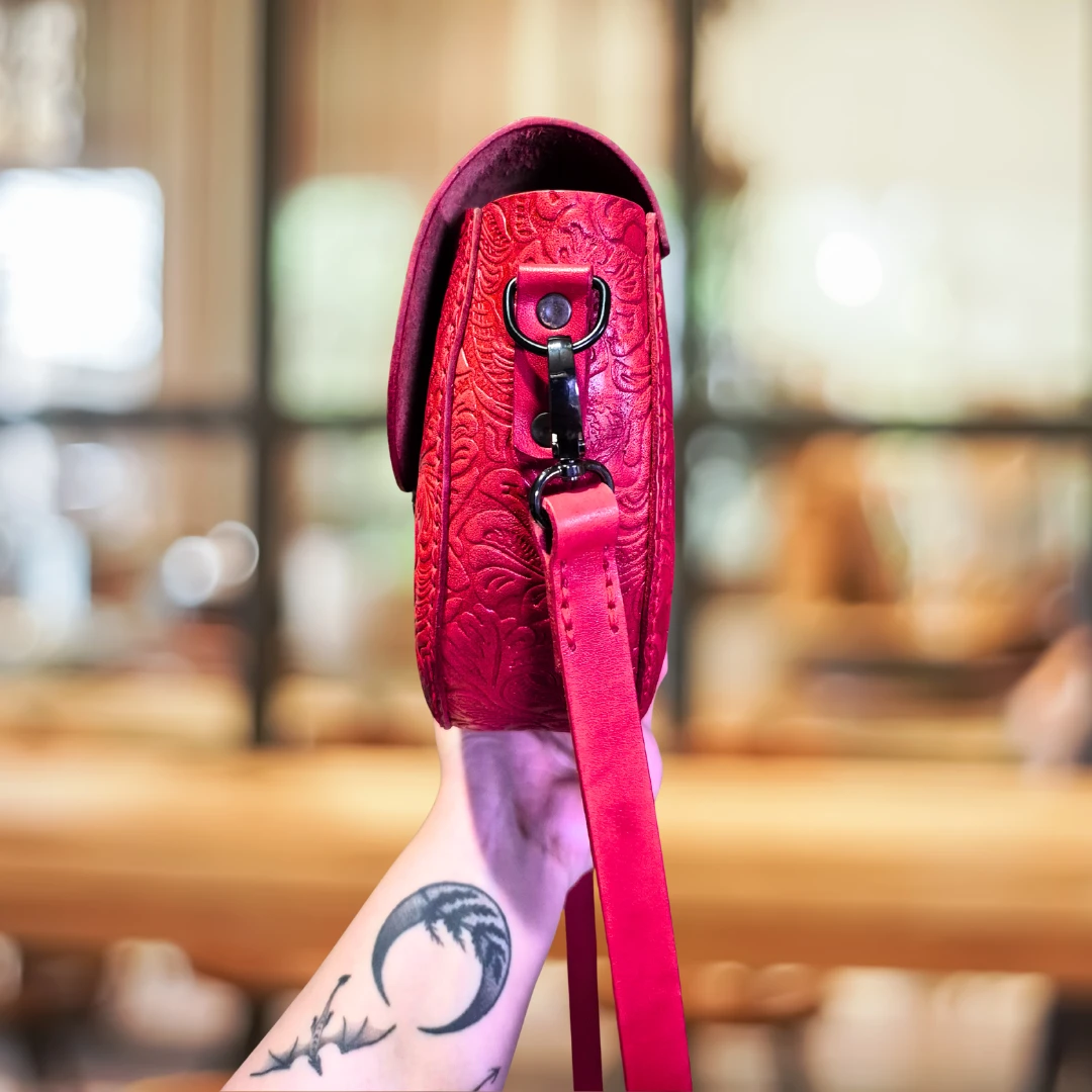 OD RĘKI czerwona tłoczona torebka Wild skóra naturalna