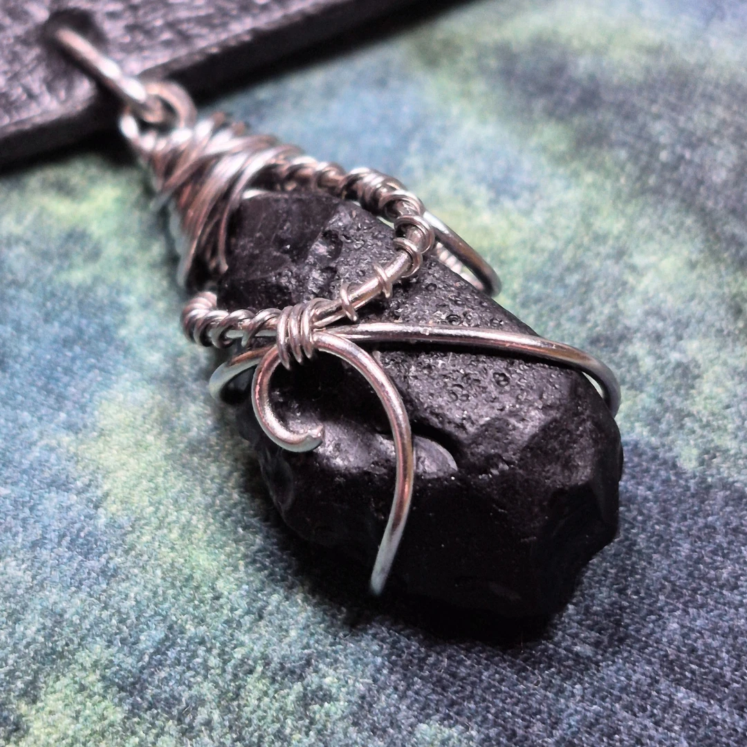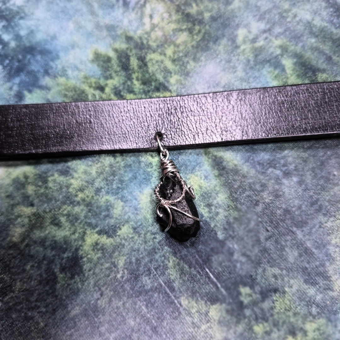 Skórzany czarny choker Serce mroku tektyt oprawiony w stal chirurgiczną Smocza Manufaktura x Velimea nr 2