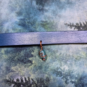 Skórzany niebieski choker Syrenia łza apatyt oprawiony w miedź Smocza Manufaktura x Velimea
