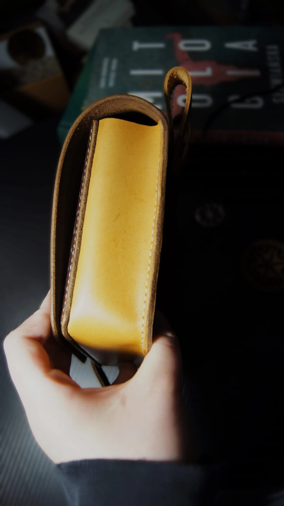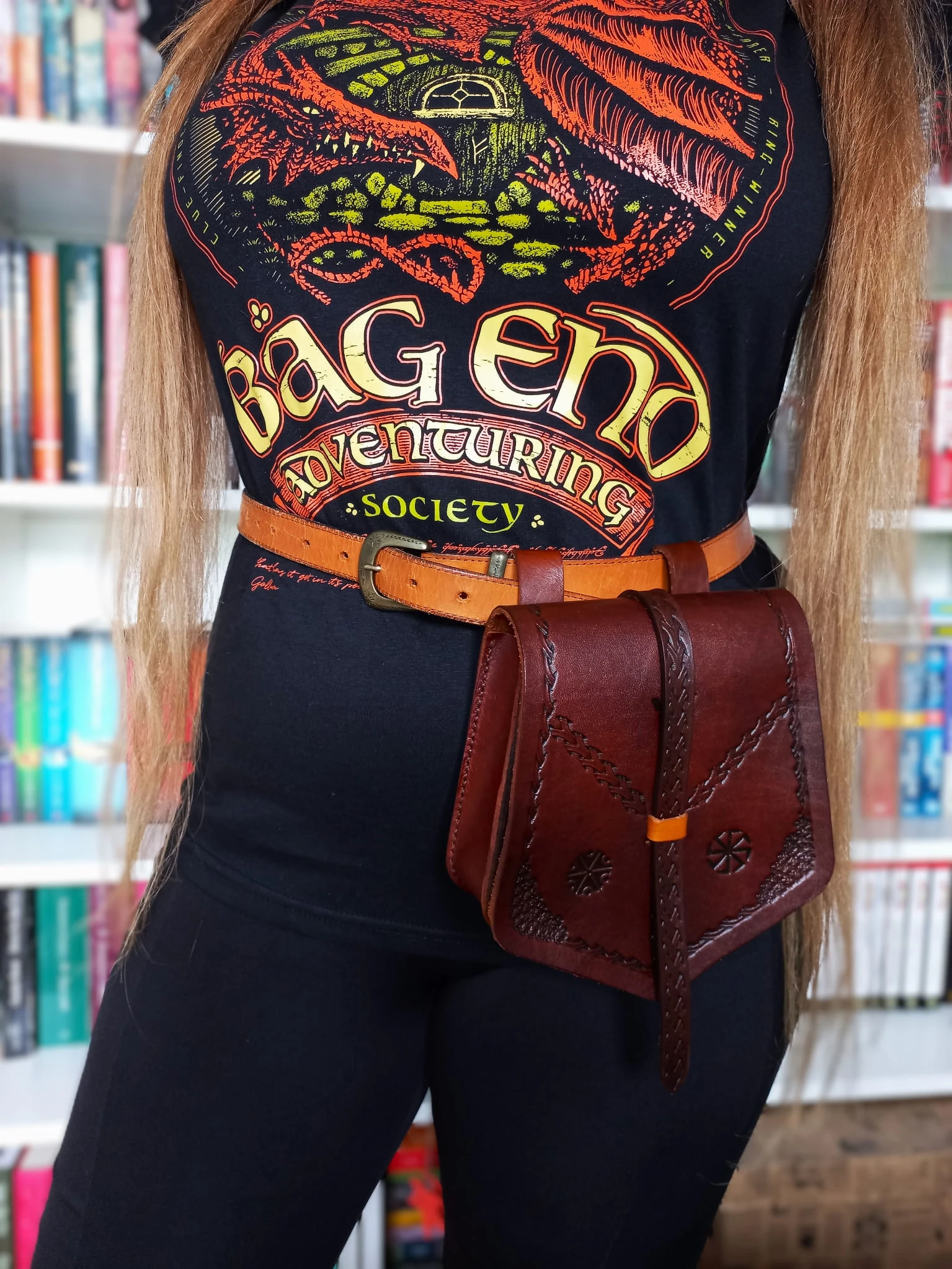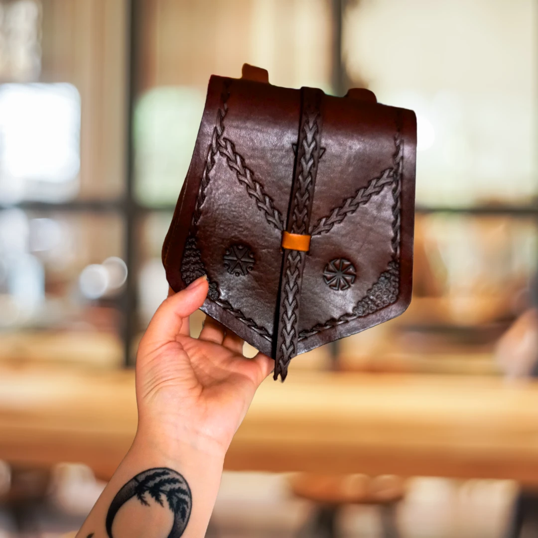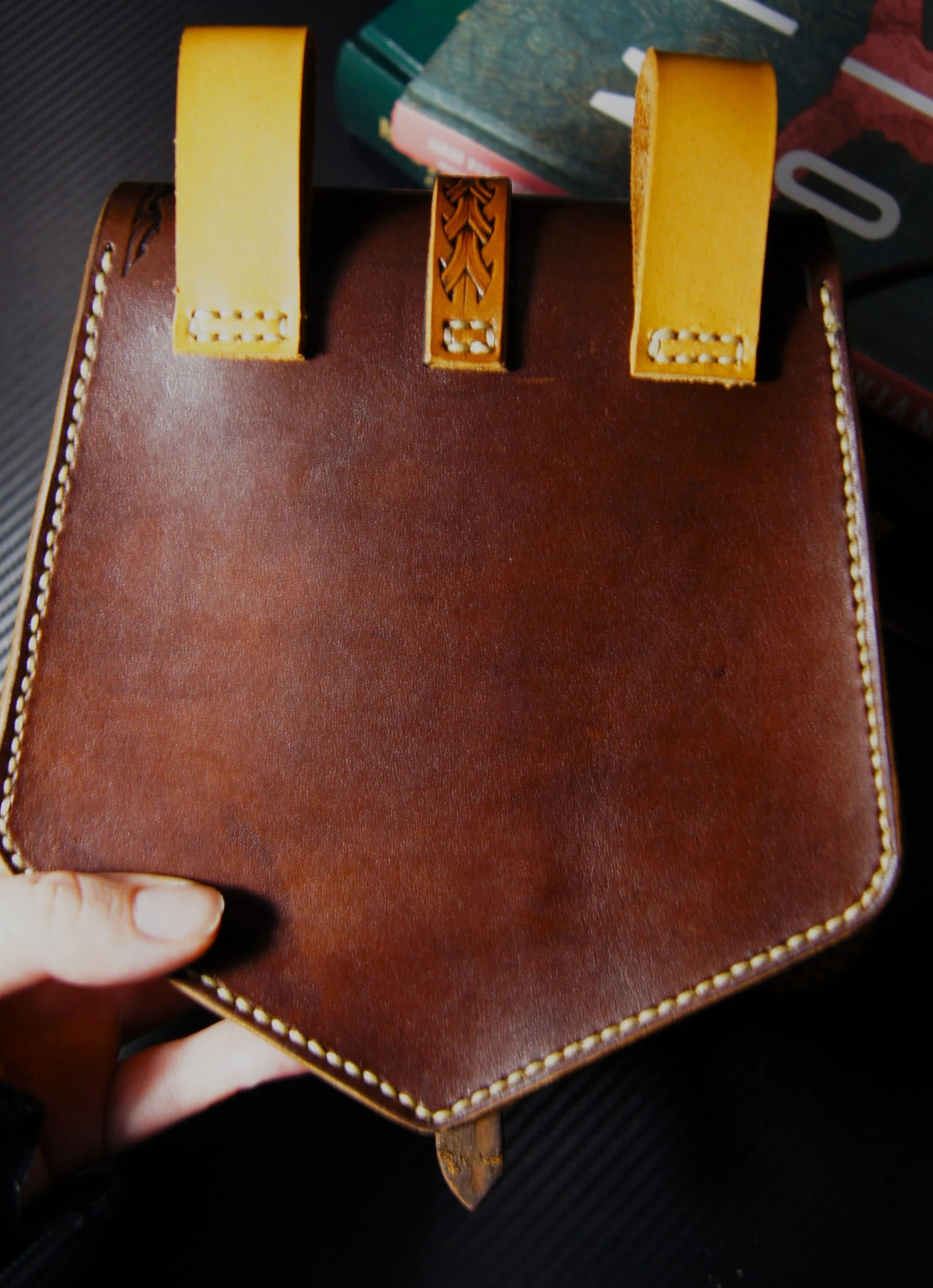 Ręcznie wykonana kaletka montowana do paska, wytłoczona, montowana do paska.