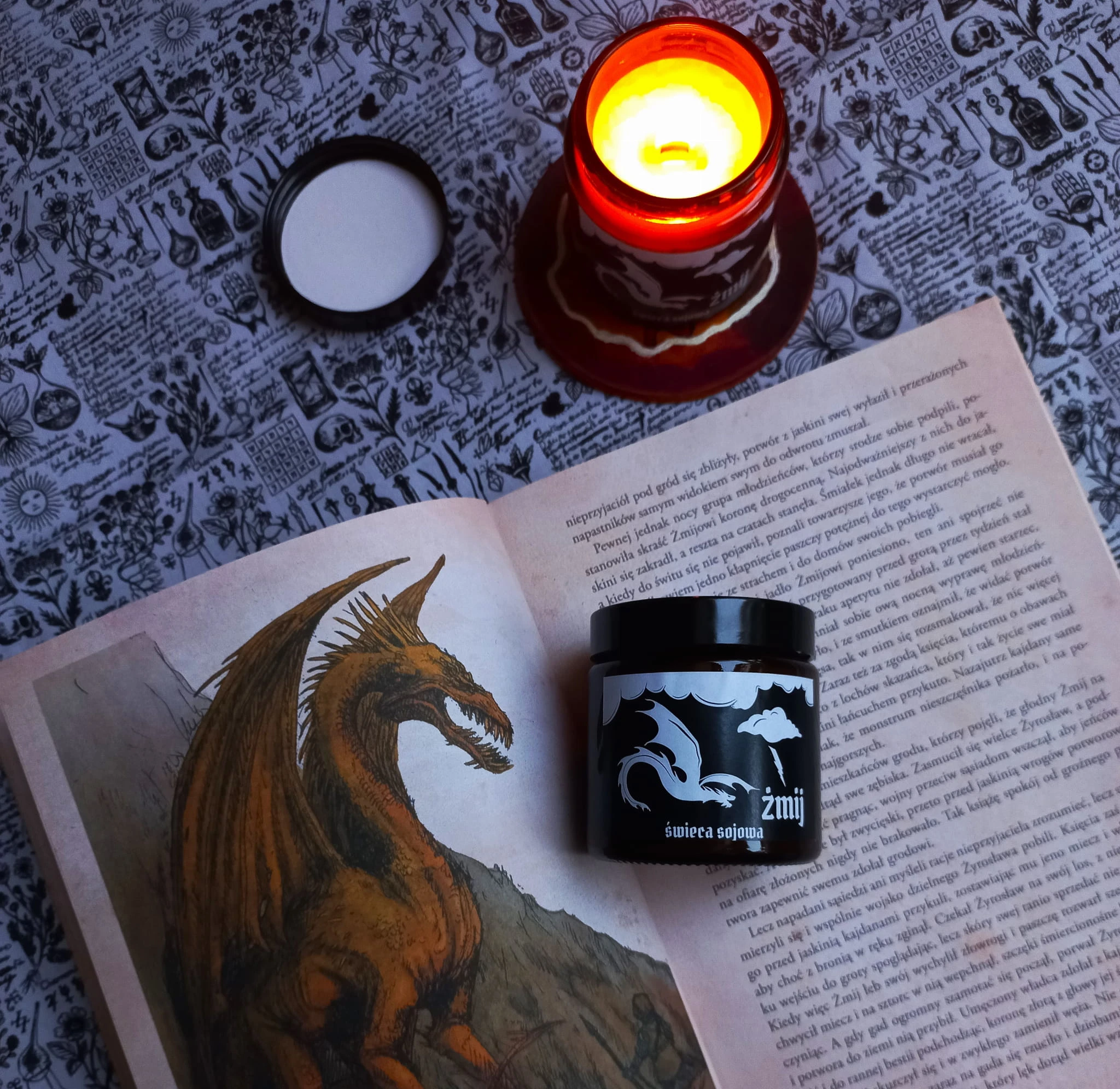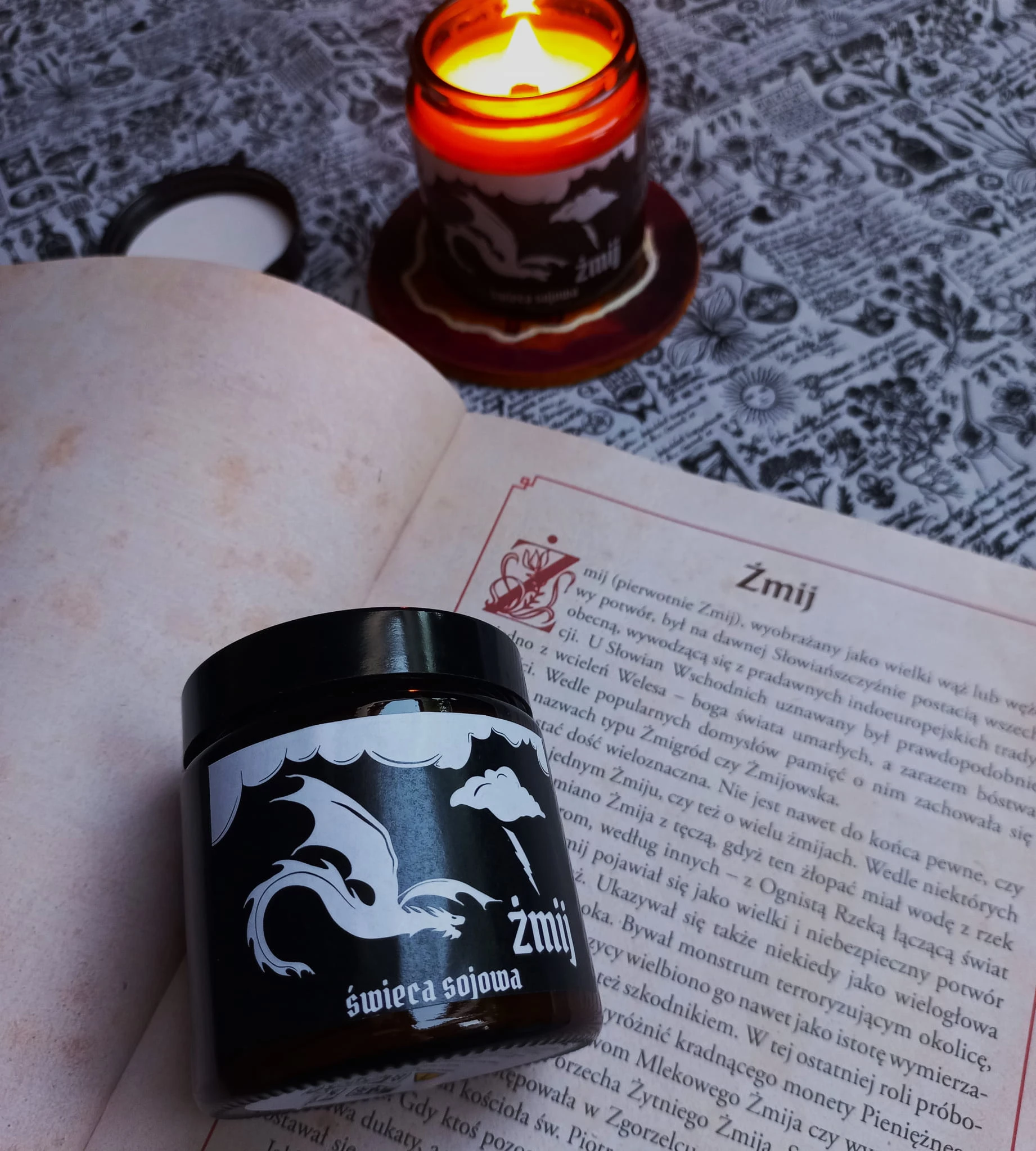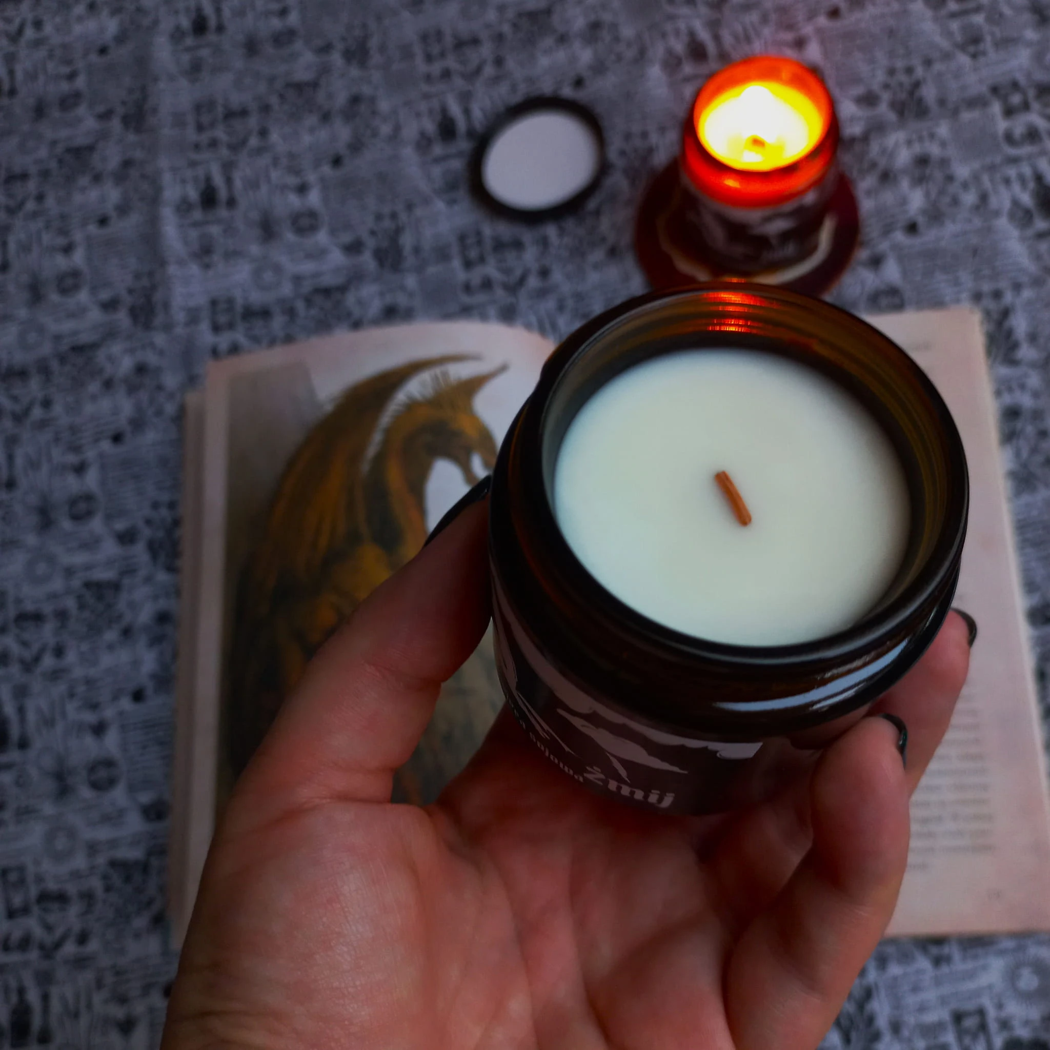 Nasza ręcznie robiona, słowiańsko-smocza świeca sojowa o zapachu powietrza po burzy