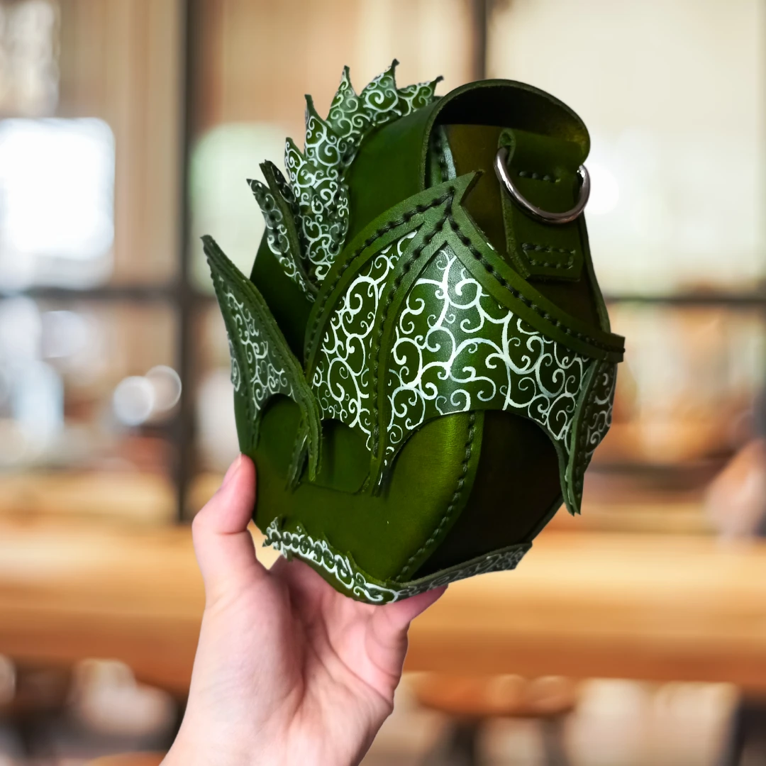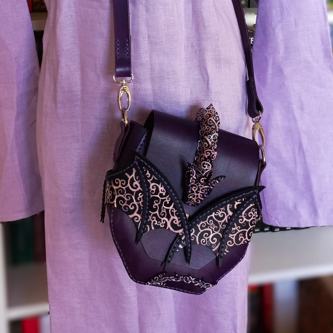 Smocza torba, którą oplatają smocze skrzydła, wykonana z naturalnej skóry,