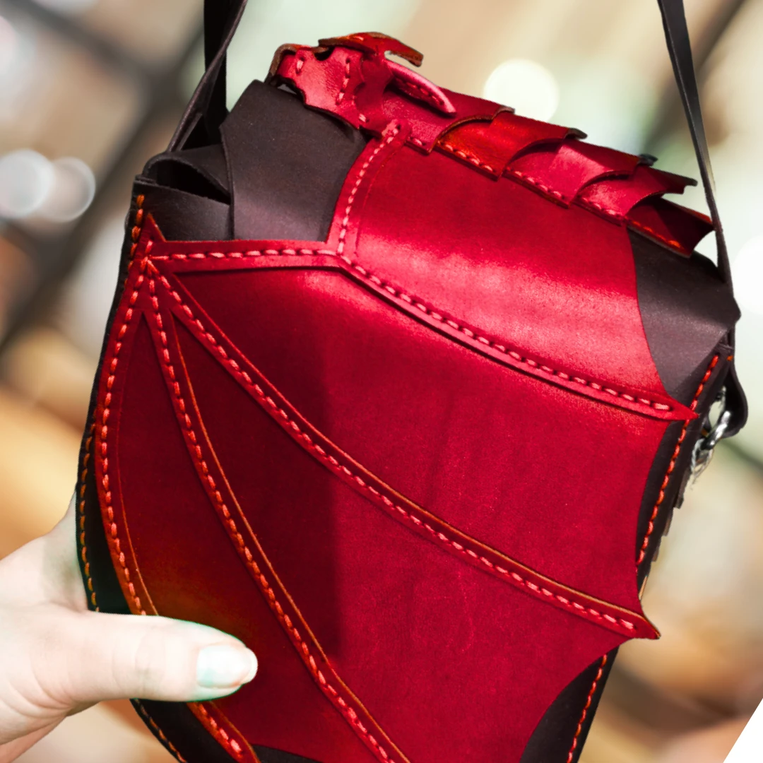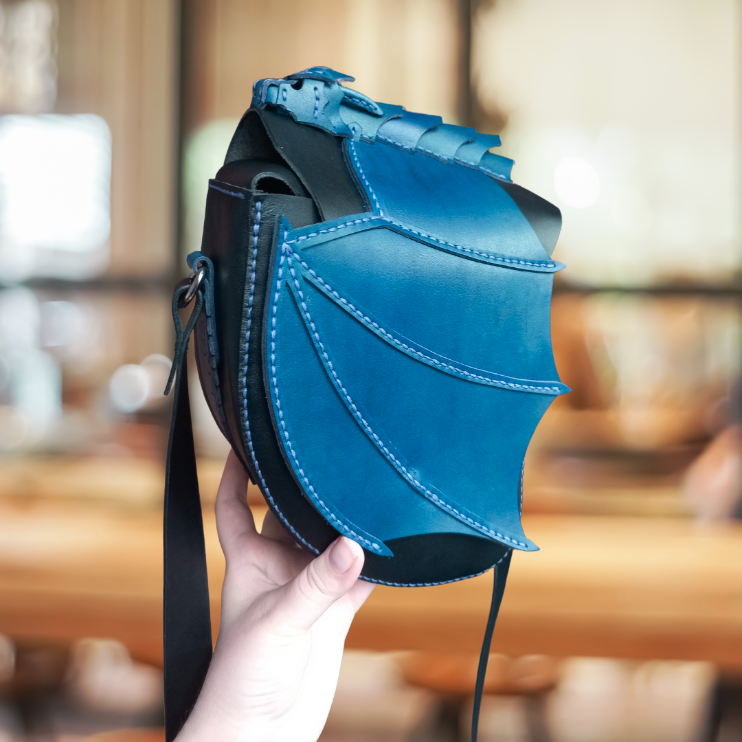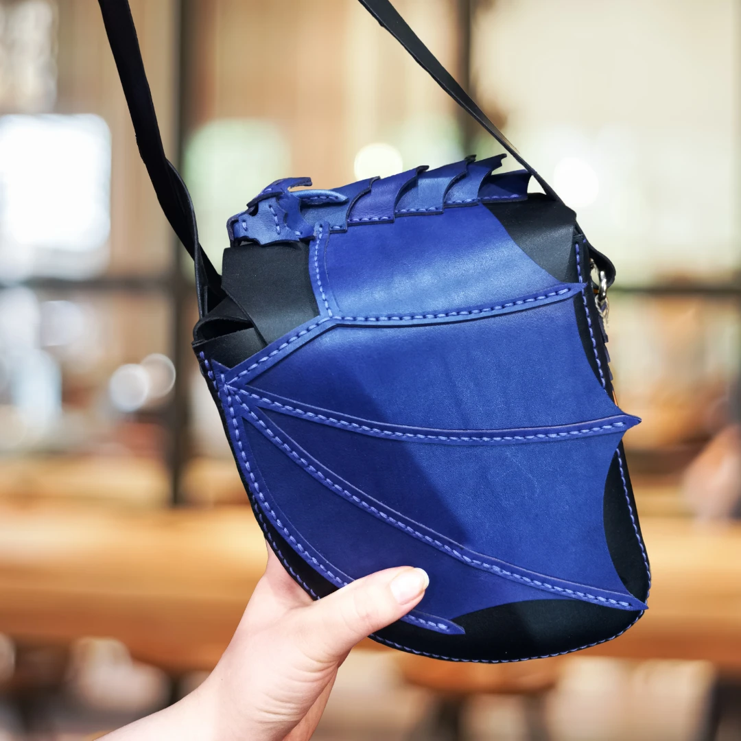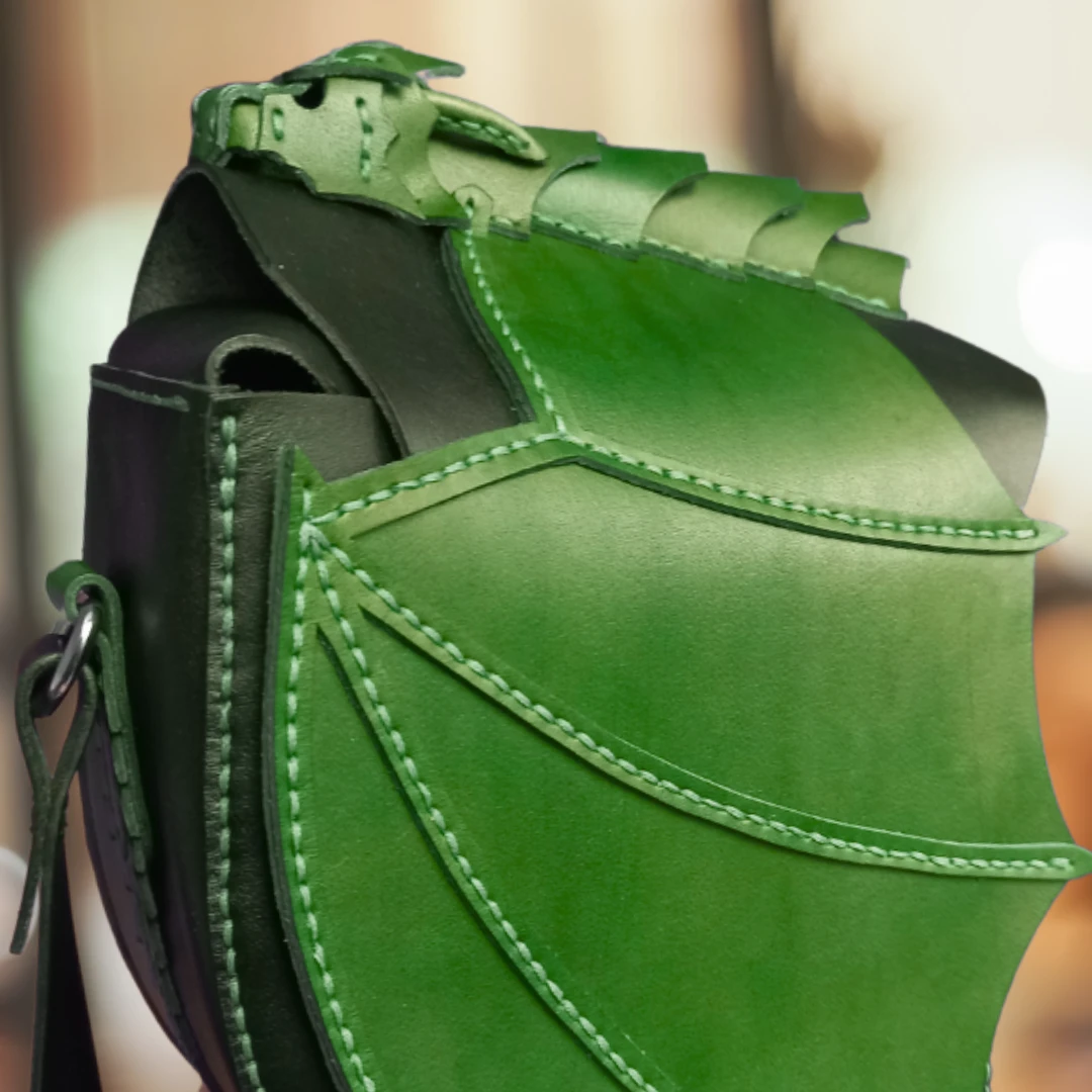 Torba, na której leży smok, wykonana z naturalnej skóry,