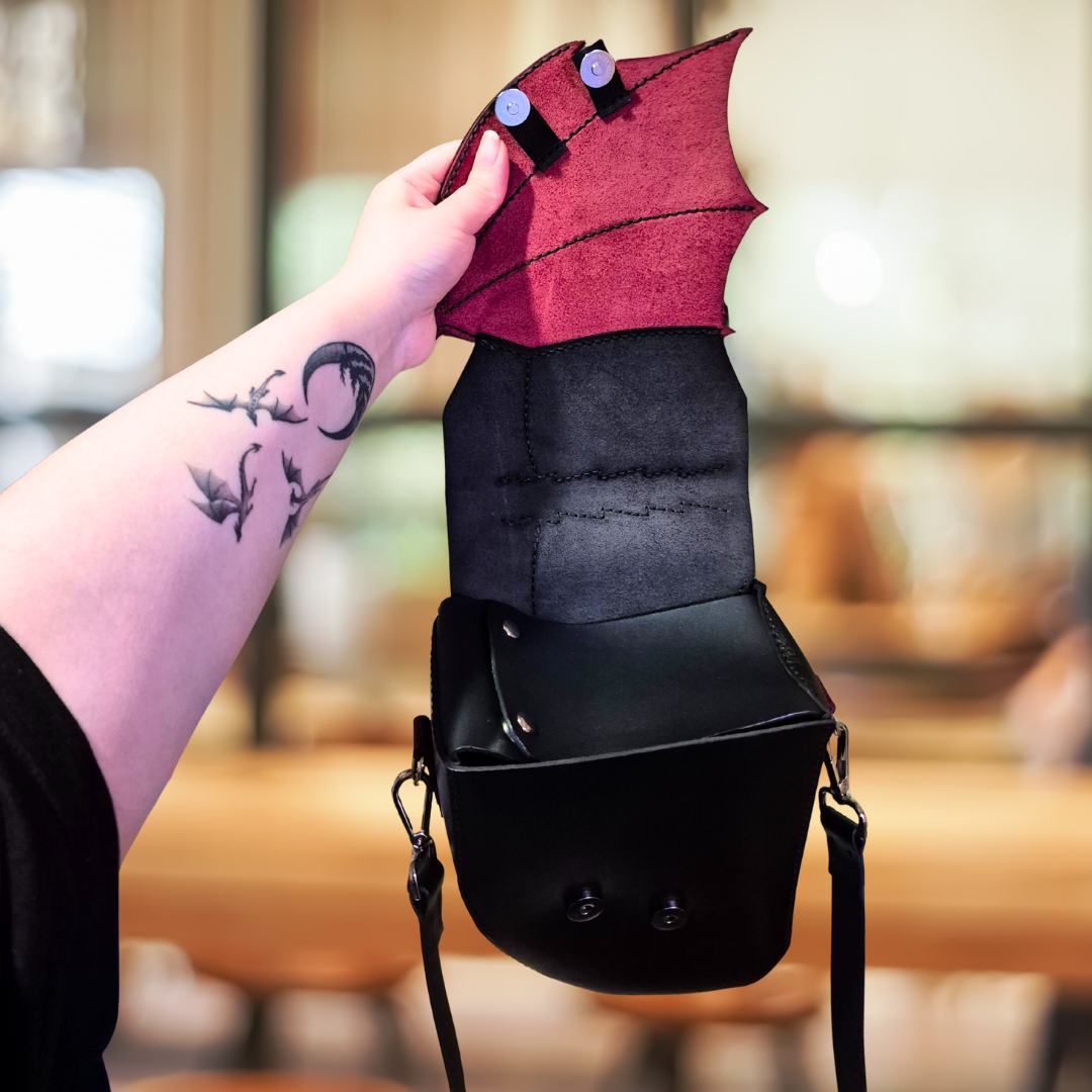 Klapa zapinana na magnes ukryty pod skrzydłem smoka, dzięki