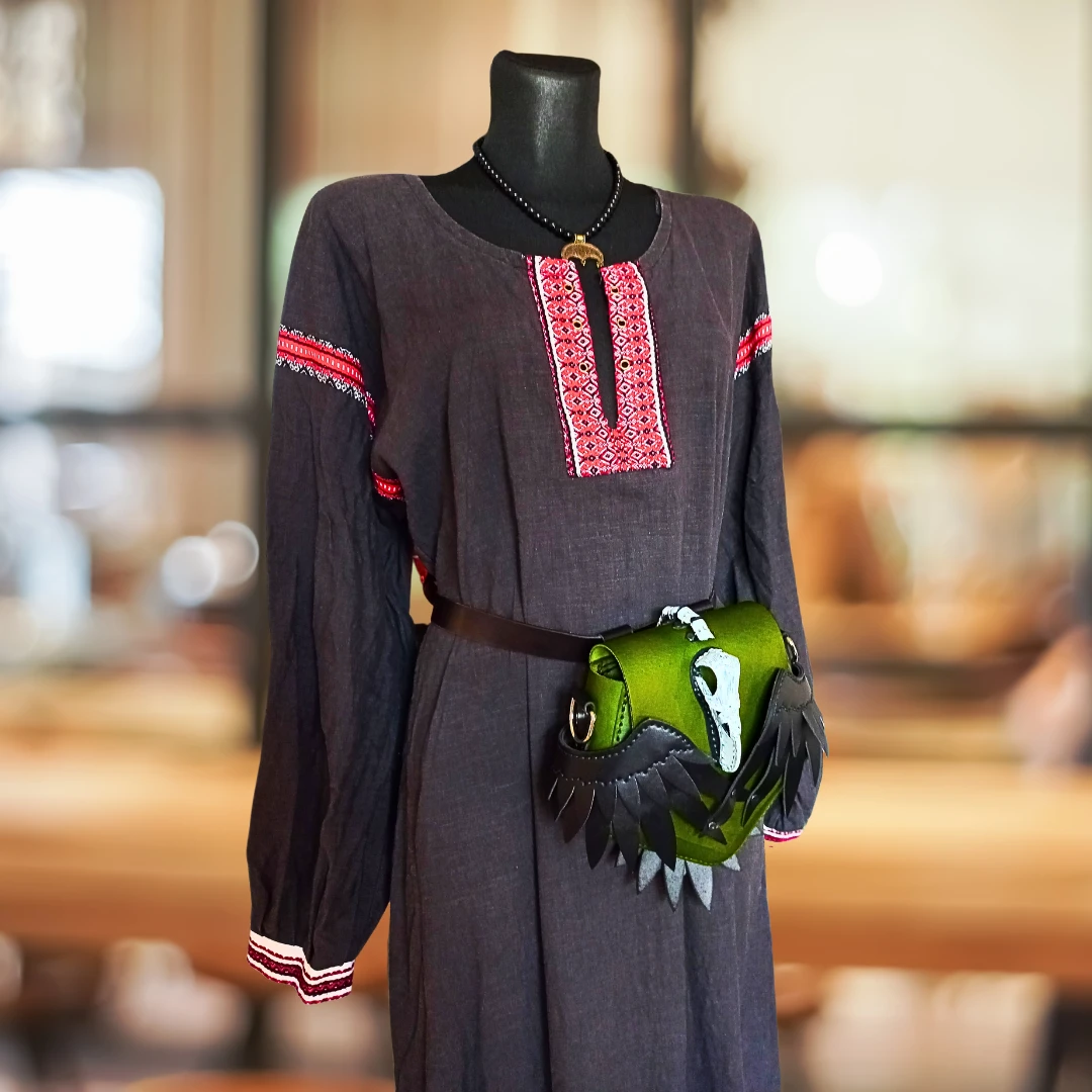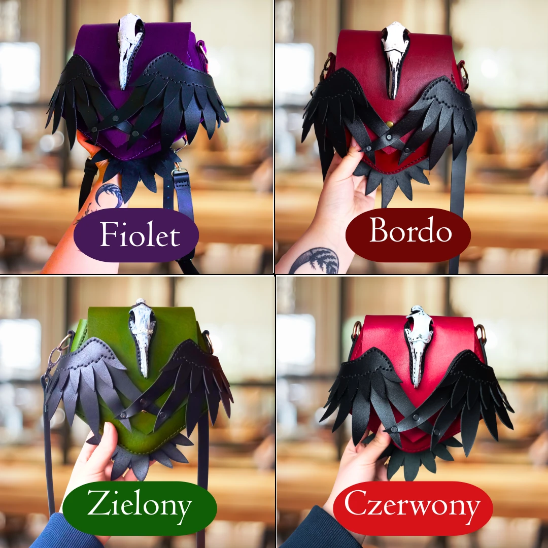 Torebko-kaletka kruk NEVERMORE, skóra naturalna