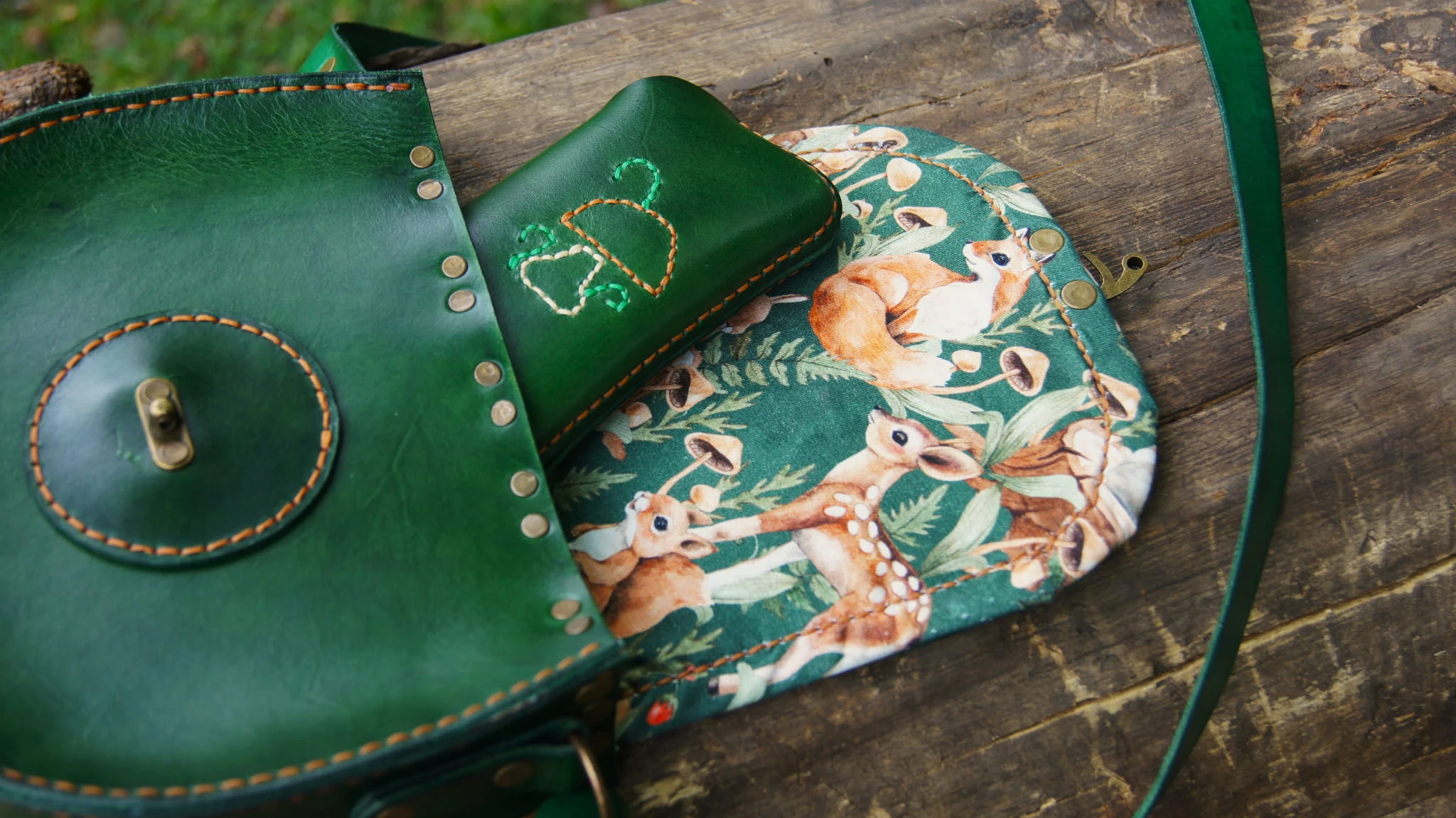Zestaw Green Forest - skórzana torebka i etui na okulary
